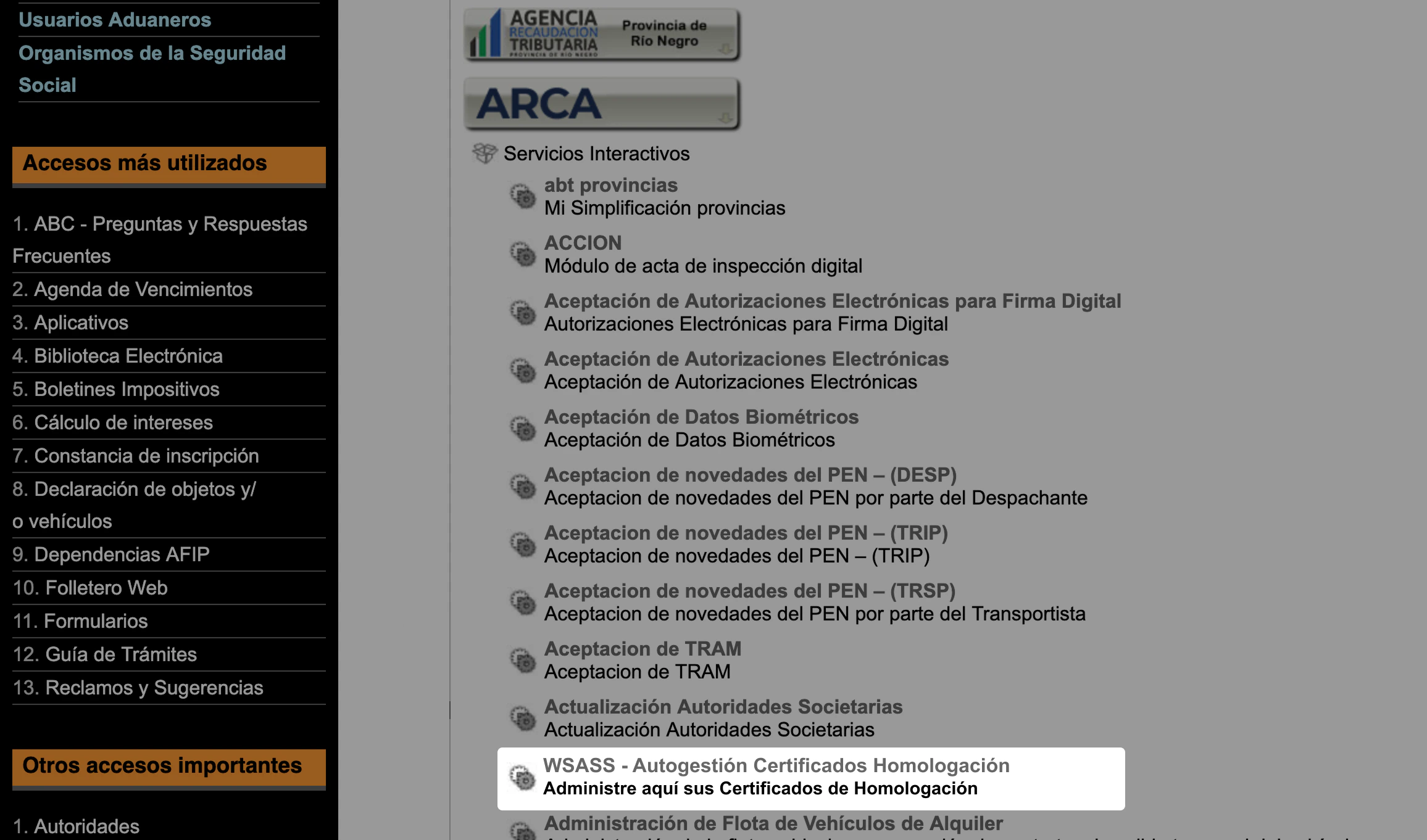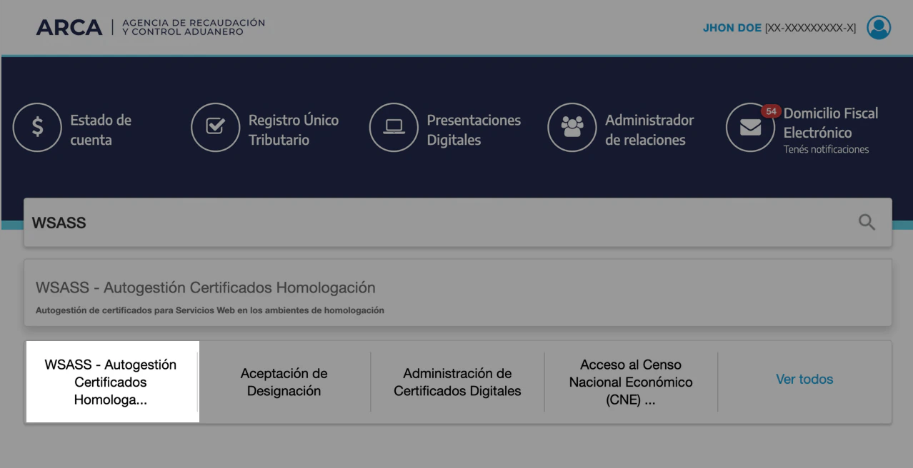 Dentro de nuestro escritorio de AFIP debemos ingresar en Autogestión Certificados Homologación